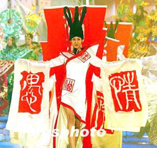2004年4月12日晚上,在第三屆中國(guó)河南國(guó)際投資貿(mào)易洽談會(huì)開(kāi)幕式大型文藝晚會(huì)上,一組根據(jù)中原歷史、歷史文物設(shè)計(jì)的時(shí)裝,給觀眾留下了深刻印象。馬健 攝