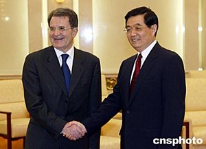 普羅迪表示,目前歐盟同中國的關系處于歷史最好時期。雙方不僅在經(jīng)濟上,而且在政治、文化以及科技等領域都進行了良好和富有成果的合作。歐盟重視中國在國際上的重要地位和作用,希望進一步密切同中國的戰(zhàn)略關系,全面加強同中國在各領域的合作。