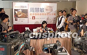 己淡出娛樂(lè)圈一段日子的周慧敏4月21日在香港舉行其首部作品《我的貓兒子周慧豹》新書(shū)發(fā)布會(huì),吸引眾多傳媒到場(chǎng)采訪。作者:鄧慶樂(lè)