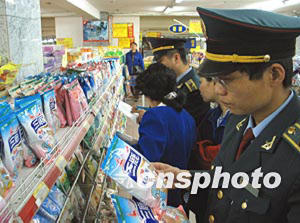根據(jù)北京市工商局統(tǒng)一部署,為防止在北京市場上銷售安徽阜陽地區(qū)發(fā)現(xiàn)的五十五種不合格奶粉,西城工商分局執(zhí)法檢查隊四月二十三日對轄區(qū)內(nèi)商場、超市、集貿(mào)市場及食品店進(jìn)行嚴(yán)格檢查。作者:郝軍