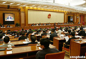 中新網(wǎng)4月25日電 十屆全國人大常委會(huì)第九次會(huì)議25日在北京舉行,吳邦國委員長出席并主持了上午的第一次全體會(huì)議。
