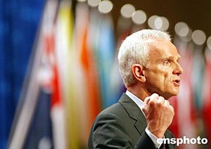 德國寶馬集團董事長龐克四月二十五日在企業(yè)家峰會上演講。亞洲博鰲論壇今年首次舉行企業(yè)家峰會,會議吸引了寶馬、飛利浦、三星等世界著名企業(yè)家前來出席。中新社記者:鄭萍萍