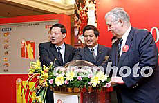 4月28日,2004-05CBA聯(lián)賽商務推介會在北京舉行,這個賽季的比賽將在賽制和招商模式上進行重大改革:南北分區(qū)的新賽制、公開透明的招商模式、為球迷、贊助商和媒體服務。圖為籃管中心主任李元偉(左一)與嘉賓共同開啟新賽季南北雙方參賽隊伍。中新社記者:盛佳鵬