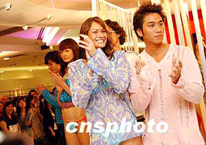 4月29日,艷麗的模特在香港“連卡佛”商場舉辦“2004年春夏男女時(shí)尚服裝展”上,演繹時(shí)尚泳裝系列。  香港新晉紅星吳卓羲4月29日在香港“連卡佛”商場,客串模特演繹春夏具潮流風(fēng)格新裝。
