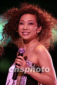 去年受SARS影響未能舉辦的林憶蓮演唱會四月三十日晚在首都體育場重新開演,林憶蓮改變以往溫柔賢淑的形象以一頭爆炸金發(fā)亮相。作者:高遠