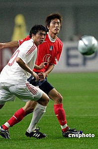 中國國奧隊0:2不敵韓國 將對手“送入”雅典奧運 (2004-05-01)