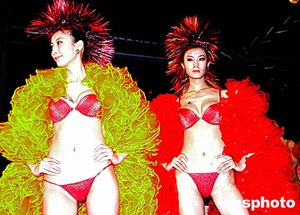 五月,著名的黛安芬內(nèi)衣公司將全面上市2004“危險曲線”內(nèi)衣新品。圖中模特展示的是新品內(nèi)衣“奢華曲線”情景,這款內(nèi)衣淡淡的桃紅色內(nèi)襯著純白的刺繡蕾絲,晶扣設(shè)計(jì)搭配低胸剪裁,奢華中盡展女性的嫵媚。中新社記者:王麗南