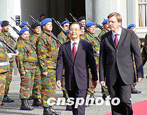 比利時(shí)首相伏思達(dá)五月五日下午舉行隆重儀式,歡迎中國國務(wù)院總理溫家寶訪問比利時(shí)。作者:蔚中