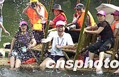 五一黃金周期間,廣東省惠州市香溪堡生態(tài)旅游景區(qū)以濃郁的嶺南風(fēng)情成為旅游熱線。圖為乘坐竹筏漂流的游客戲水享樂(lè)。作者:陳文