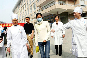 中新網5月10日電 安徽非典女患者宋某今天(10日)上午在合肥痊愈出院。專家說,這名非典痊愈者已不再具有傳染性,人們與其接觸沒有傳染危險。