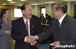 全國人大華僑委員會訪日團一行五月十一日在東京與旅日僑界人士座談,其熱點匯集在為眾多新老華僑所共同關(guān)注的子女華文教育問題。圖為率團訪日的陳光毅主任向橫濱山手中華學校校長潘民生詢問相關(guān)情況。作者:王健