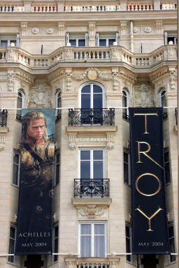 戛納電影節(jié)擁有世界上最大的電影交易市場,其影片成交額比其他全部電影節(jié)的交易量加起來還要多,所以海濱大道上的戶外廣告位是各大電影發(fā)行公司必爭之地,和去年《黑客帝國》鋪天蓋地的宣傳攻勢相比,目前還沒有任何一部影片能與其媲美。除了《壞教育》、《殺死比爾》、《特洛伊》少數(shù)幾部電影之外,相當(dāng)數(shù)量的廣告位還在張貼著影展的官方海報(bào)。到記者發(fā)稿為止,街上多是載重貨車,卷成一捆捆的巨幅宣傳海報(bào)在兩三天之后將會(huì)把整條海濱大道裝點(diǎn)成一個(gè)露天電影市場。