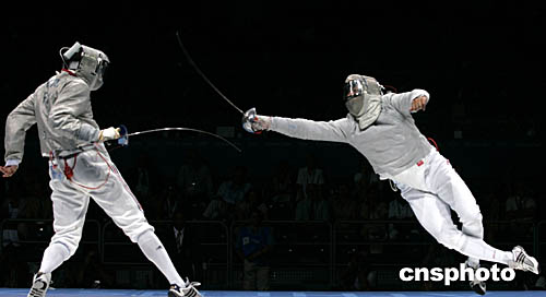 在當(dāng)?shù)貢r(shí)間8月19日舉行的男子配劍團(tuán)體賽中,法國(guó)隊(duì)?wèi)?zhàn)勝意大利隊(duì)奪得冠軍。圖為兩隊(duì)選手比賽時(shí)場(chǎng)面。