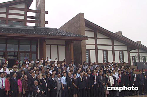 今天上午,來自五大洲三十一個(gè)國(guó)家的百余名海外華僑華人冒雨參觀鄧小平故居陳列館。在造型獨(dú)具匠心的陳列館前,他們與國(guó)務(wù)院僑辦、四川省、廣安市的官員合影留念。作者:楊杰