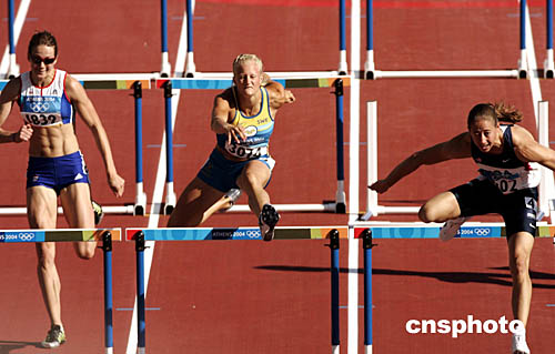 圖為在當?shù)貢r間8月20日舉行的女子七項全能100米欄比賽中,選手們的出色表現(xiàn)。