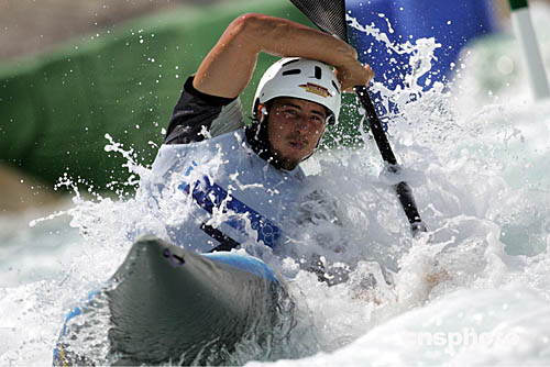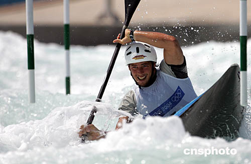 圖為法國選手在當(dāng)?shù)貢r(shí)間8月20日舉行的男子皮劃艇比賽時(shí)的精彩表現(xiàn)。