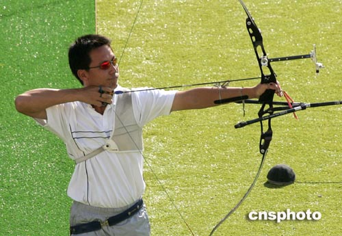 中新社雅典八月二十一日電 中國(guó)臺(tái)北選手在剛剛結(jié)束的奧運(yùn)會(huì)男子射箭團(tuán)體決賽中以二百四十五比二百五十一負(fù)于韓國(guó)隊(duì),獲得銀牌。