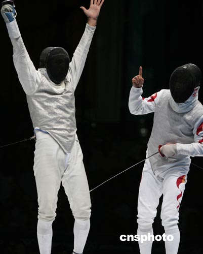 這也成為這場(chǎng)比賽的轉(zhuǎn)折點(diǎn)。此后中國(guó)選手一直被對(duì)手壓著打,比分差距越來(lái)越大,到董兆致最后一次出場(chǎng)時(shí),中國(guó)隊(duì)以三十四比四十落后對(duì)手六劍。絕境中的董兆致表現(xiàn)神勇,利用桑佐的求勝心切接連進(jìn)攻得手,竟把比分追成了四十二平。遺憾的是,他最終沒能完成大逆轉(zhuǎn),被桑佐連刺三劍而再度飲恨。