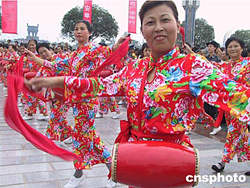 廣安故里八月二十二日隆重舉行鄧小平誕辰百年紀念活動。圖為市民在思源廣場跳腰鼓舞。作者:王辛莉