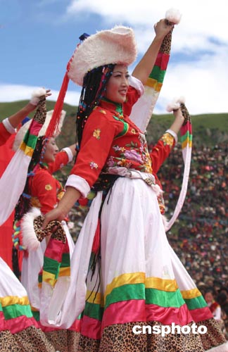 身披價(jià)值上百萬(wàn)飾品的專業(yè)藏族服飾表演隊(duì)引來(lái)全場(chǎng)喝彩。