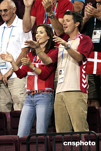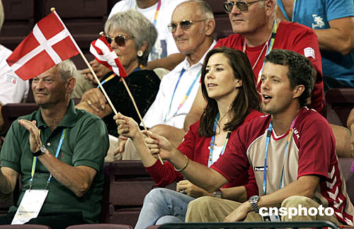 圖為丹麥王子弗雷德里克(Frederik)和他的妻子瑪莉·唐納森(Mary)親臨現(xiàn)場(chǎng)為選手們助威。