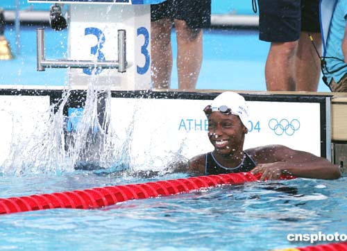 圖為在當(dāng)?shù)貢r(shí)間21日進(jìn)行的女子自由泳50米決賽中奪得亞軍的法國選手梅特拉。
