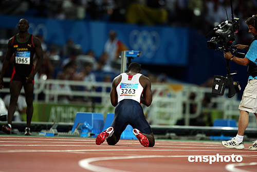 美國選手加特林(Justin Gatlin)在當(dāng)?shù)貢r(shí)間8月22日舉行的男子100米“飛人”大戰(zhàn)中力壓群雄奪取桂冠。圖為他在奪冠后興奮的慶祝自己的勝利。