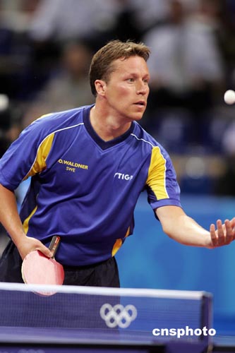 當(dāng)?shù)貢r(shí)間八月二十三日下午,在雅典奧運(yùn)乒乓球男子單打決賽中,中國(guó)選手王勵(lì)勤戰(zhàn)勝瑞典老將瓦爾德內(nèi)爾獲得銅牌。中新社記者:毛建軍