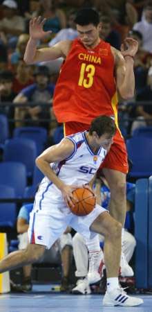 更為重要的是,中國(guó)男籃今天在失誤和籃板球方面較前幾場(chǎng)比賽有了較大改觀。在姚明的帶動(dòng)下,中國(guó)隊(duì)較好地控制了自己的后場(chǎng)籃板,并在前場(chǎng)籃板球方面沖搶積極,給塞黑隊(duì)進(jìn)攻造成了相當(dāng)?shù)男睦韷毫Α?/p>