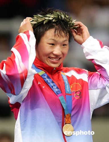 十九歲小將王旭在女子摔跤七十二公斤級決賽中戰(zhàn)勝俄羅斯選手瑪尼奧羅娃,勇奪冠軍。這是中國選手在首次成為奧運(yùn)會正式項(xiàng)目的女子摔跤比賽中奪得的第一枚金牌。決賽中,馬妮奧洛娃先得一分,但王旭表現(xiàn)沉著冷靜,很快追平比分,并擴(kuò)大戰(zhàn)果,最終將總比分定格在七比二,奪得了金牌。世界冠軍日本名將濱口京子在半決賽中被王旭以三分優(yōu)勢擠出冠亞軍爭奪戰(zhàn),只獲得銅牌。