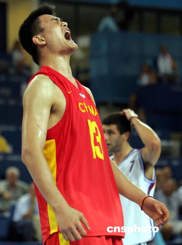 當?shù)貢r間八月二十三日下午,中國男籃在雅典奧運會小組賽最后一場比賽中以67:66一分險勝塞黑隊,闖入前八名,姚明打滿全場,依然是球隊獲勝的頂梁柱。中新社記者:任晨鳴
