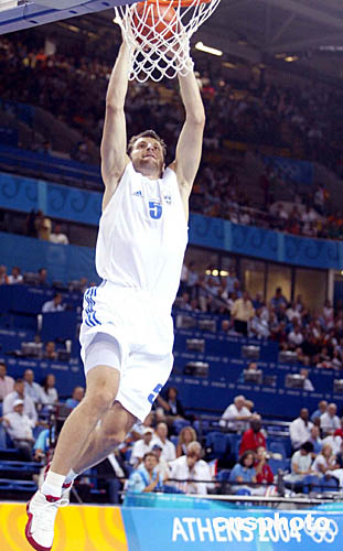 圖為希臘隊5號選手Theodoros PAPALOUKAS灌籃的鏡頭。