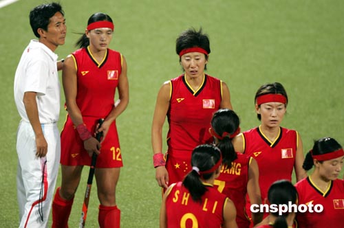 雅典當(dāng)?shù)貢r間8月24日晚,奧運(yùn)女子曲棍球半決賽在中國與德國隊(duì)之間舉行,中國女曲在全場占優(yōu)的形勢下有多次錯失破門良機(jī),最終在點(diǎn)球大戰(zhàn)中以3比4負(fù)于德國,無緣決賽。中新社記者:任晨鳴