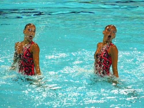 圖:韓國(guó)隊(duì)的雙人花樣游泳 (2004-08-25)