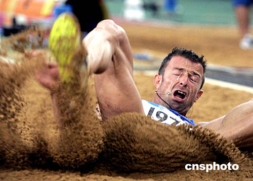 圖為希臘選手Dimitrios FILINDRAS在跳遠(yuǎn)比賽中的一幕情景。