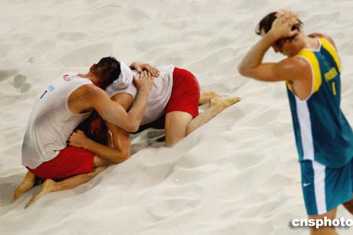 在當?shù)貢r間24日進行的沙灘排球賽銅牌爭奪戰(zhàn)中,瑞士擊敗澳大利亞。