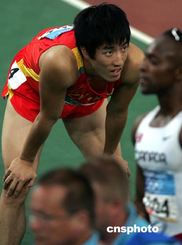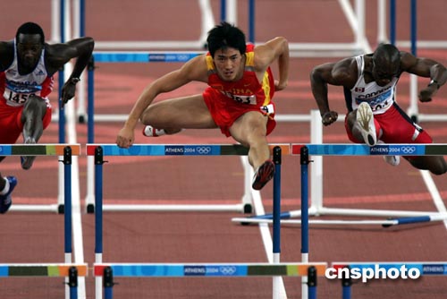 當?shù)貢r間8月26日晚,雅典奧運會田徑比賽繼續(xù)進行,奪標大熱門、中國的劉翔在110米欄半決賽中以13秒18的成績輕松晉級決賽。在參加決賽的八名選手中,劉翔的預賽成績名列第四,將在第六道參加決賽。中新社記者:任晨鳴