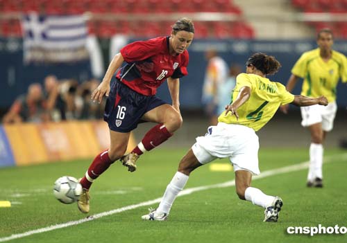 圖為在當(dāng)?shù)貢r間26日舉行的女足決賽中,巴西隊員Tania的表現(xiàn)。