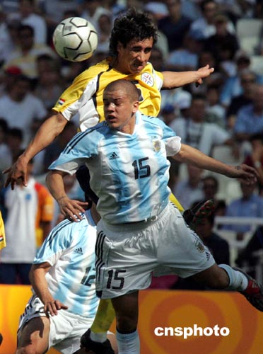 中新社雅典八月二十八日電 (記者 宋方燦)奧運(yùn)會(huì)男子足球比賽今天在雅典謝幕,阿根廷隊(duì)在決賽中以一比0力克南美近鄰巴拉圭隊(duì),奪取金牌。特維茲打入了本場比賽的唯一入球,這也是他在本屆奧運(yùn)會(huì)中的第八個(gè)進(jìn)球。巴拉圭隊(duì)在下半時(shí)兩人被紅牌罰下,最后僅以九人應(yīng)戰(zhàn)。