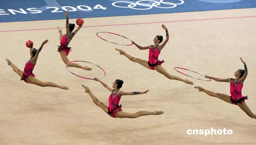 來自遼寧、廣東、四川和浙江的六名選手代表中國參加了本屆奧運(yùn)會(huì)藝術(shù)體操團(tuán)體項(xiàng)目的比賽。今天的決賽中,中國姑娘憑借較為正常的發(fā)揮首輪獲得二十三點(diǎn)一的分?jǐn)?shù),而上屆冠軍俄羅斯隊(duì)則以絕對實(shí)力首輪以二十五點(diǎn)三分暫列榜首。