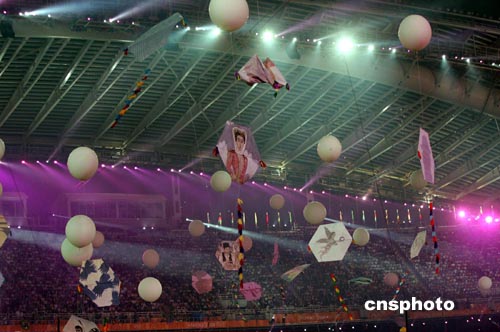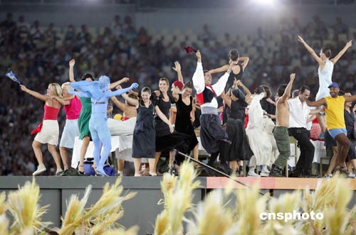 當(dāng)?shù)貢r間八月二十九日,第二十八屆奧林匹克運動會在雅典圓滿結(jié)束。圖為閉幕式上的文藝表演。中新社記者:毛建軍