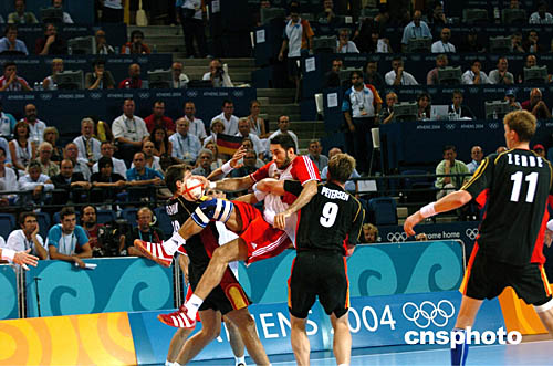 圖為在當?shù)貢r間8月29日進行的男子手球決賽中,克羅地亞以26比24擊敗得國獲得冠軍。