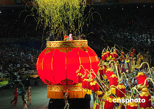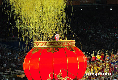 在當(dāng)?shù)貢r(shí)間8月29日舉行的奧運(yùn)會(huì)閉幕式上,一中國小女孩在緩緩升起的大紅燈籠上演唱《茉莉花》。