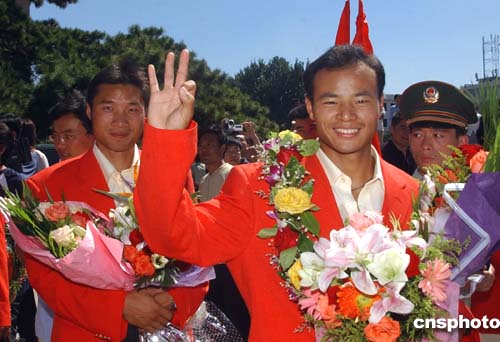 圖:奧運(yùn)冠軍孟關(guān)良、楊文軍載譽(yù)回國