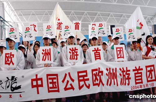 九月一日,首批準(zhǔn)備出發(fā)游歐洲的廣州游客匯集廣州新白云機(jī)場(chǎng)。歐洲游今日起全面開放,有資質(zhì)的國際旅行社將獲批在今日后,可以向總共29個(gè)歐洲國家開展中國公民自費(fèi)組團(tuán)出境游業(yè)務(wù),中國大陸即將掀起歐洲旅游熱。作者:劉衛(wèi)勇