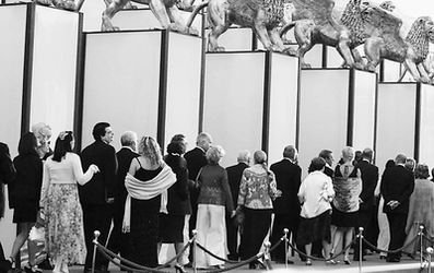 不知道從什么時候開始,歐洲電影節(jié)和罷工游行就像孿生兄弟一樣,形影不離。本屆威尼斯電影節(jié)也不能幸免。傍晚時分,在參展演員和導(dǎo)演下榻的威斯汀酒店外,一群統(tǒng)一著裝的人組成方隊圍在門口,他們每個人身上都掛著大紙牌,紙牌背面寫著:“威娜”危害身體健康,請禁止其生產(chǎn)。原來本屆電影節(jié)最大的贊助商之一就是世界知名美發(fā)廠商“威娜”。電影節(jié)開幕式開始,明星們走上紅地毯時,還不斷有游行隊伍在周圍逡巡,不過,盡管是游行,他們的態(tài)度卻很平和,沉默寡言,絲毫沒有影響電影節(jié)開幕式的進(jìn)行。