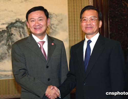 中新社北京九月二日電 中國(guó)總理溫家寶二日在中南海會(huì)見(jiàn)來(lái)華參加亞洲政黨國(guó)際會(huì)議的泰國(guó)總理他信,雙方在親切友好的氣氛中就雙邊關(guān)系和地區(qū)合作等問(wèn)題交換了意見(jiàn)。