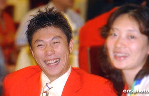 九月二日晚,中共中央辦公廳、國務(wù)院辦公廳在北京人民大會堂宴會廳舉行招待會,歡迎載譽(yù)歸來的第28屆奧運(yùn)會中國體育代表團(tuán)。圖為體操名將李小鵬在招待會上笑逐言開。中新社記者:武仲林