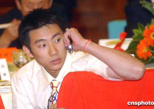 九月二日晚,中共中央辦公廳、國務(wù)院辦公廳在北京人民大會堂宴會廳舉行招待會,歡迎載譽歸來的第28屆奧運會中國體育代表團。圖為體操奧運冠軍滕海斌在招待會上。中新社記者:武仲林