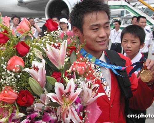 圖:奧運冠軍胡佳返穗受到熱烈歡迎